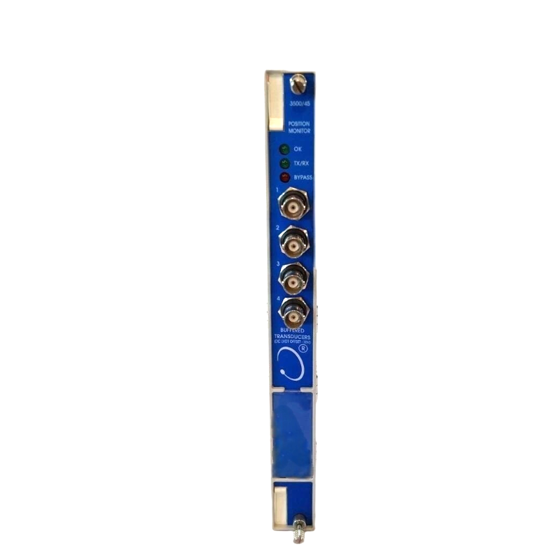The Bently Nevada 3500/45 Position Monitor combined with the dedicated I/O module is designed to deliver high-fidelity displacement and axial position monitoring within the 3500 Machinery Protection System. This configuration pairs the signal processing capability of the position monitor with a purpose-built I/O interface, ensuring accurate acquisition and reliable system-level communication.