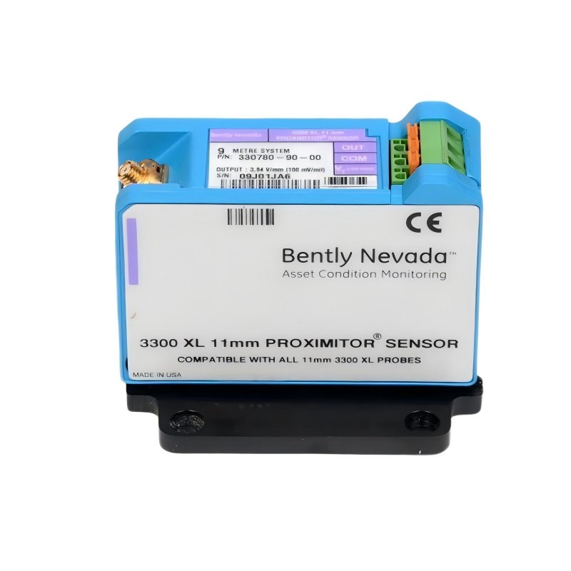 The Bently Nevada 330780-90-00 3300 XL 11 mm Proximitor Sensor is a high-precision device designed for monitoring the condition of rotating machinery. As part of the 3300 XL series, it provides highly stable and repeatable measurements of shaft vibration, axial position, and displacement. With its extended total length of 9.0 meters, this sensor offers flexibility for installation in large-scale machinery and control panels, making it ideal for continuous monitoring in industrial power generation, petrochemical, and manufacturing environments.