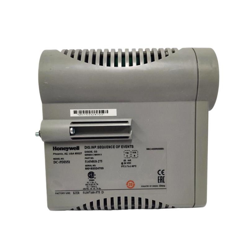 The Honeywell DC-PDIS51 51454818-275 Digital Input Event Sequence Module is designed to capture and process digital input signals in industrial automation systems. The module offers advanced capabilities for event sequencing, enabling the detection and logging of specific input events over time. It is an essential tool for industries such as oil & gas, chemical processing, and manufacturing, where accurate tracking of input events is critical for system monitoring, fault detection, and decision-making. With seamless integration into Honeywell Experion PKS and other control systems, the DC-PDIS51 provides a reliable and scalable solution for complex event processing tasks.