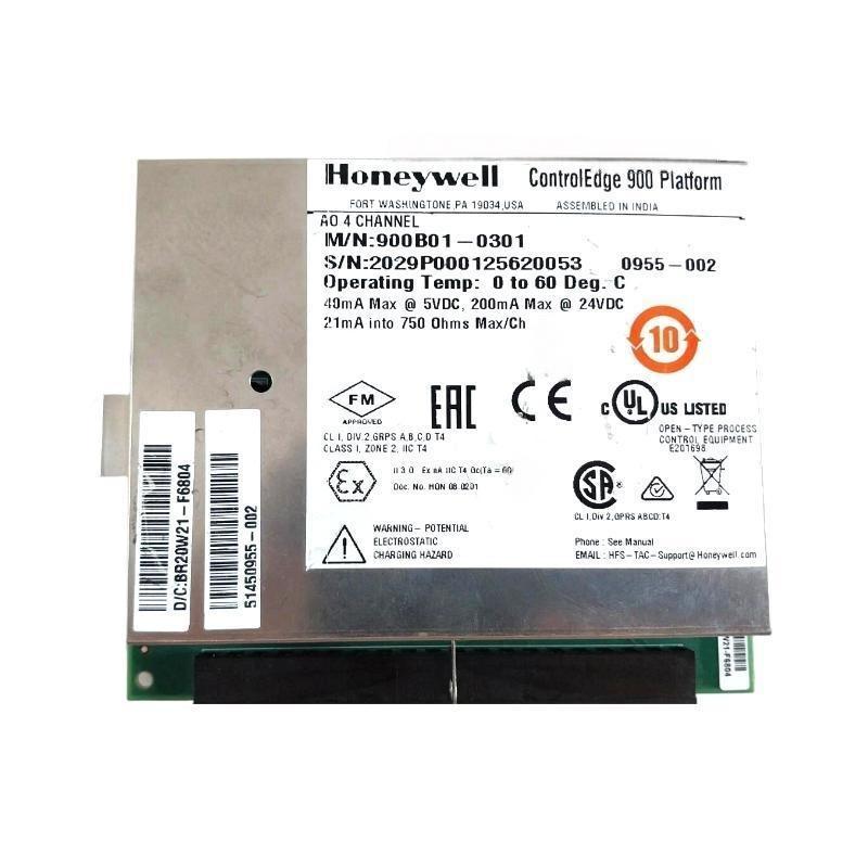 The Honeywell 900B01-0301 HC900 Analog Output Module is designed to interface between Honeywell’s HC900 Process Controller and field devices that require analog output signals for control purposes. This module plays a key role in converting digital control signals from the controller into precise analog outputs (such as 4-20 mA or 0-10 V DC) to drive field devices like actuators, valves, and other control elements. The 900B01-0301 module ensures accurate and reliable analog output control, making it ideal for applications in process automation, industrial control, and monitoring systems.