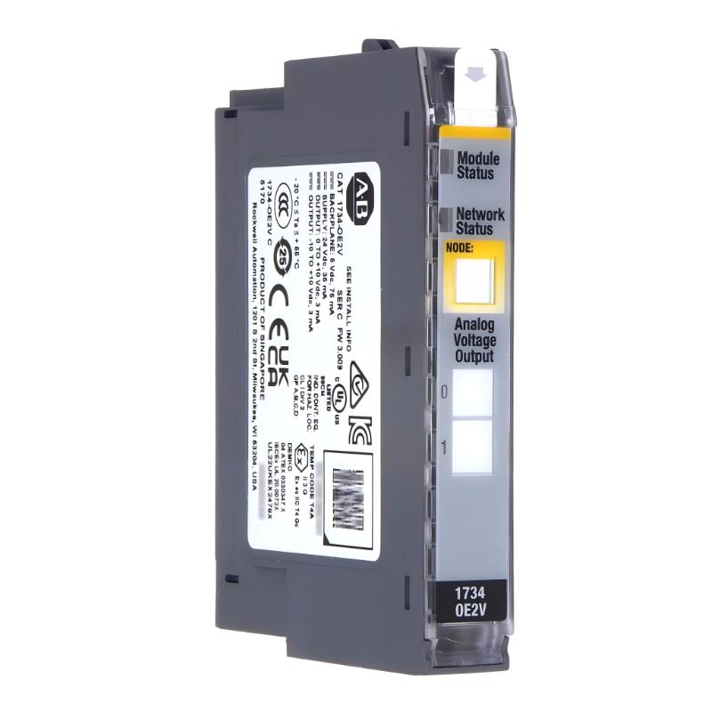 Because of its compact size, flexible system integration, and reliable analog signal performance, the 1734-OE2V module is widely used in distributed machine control and process automation systems.