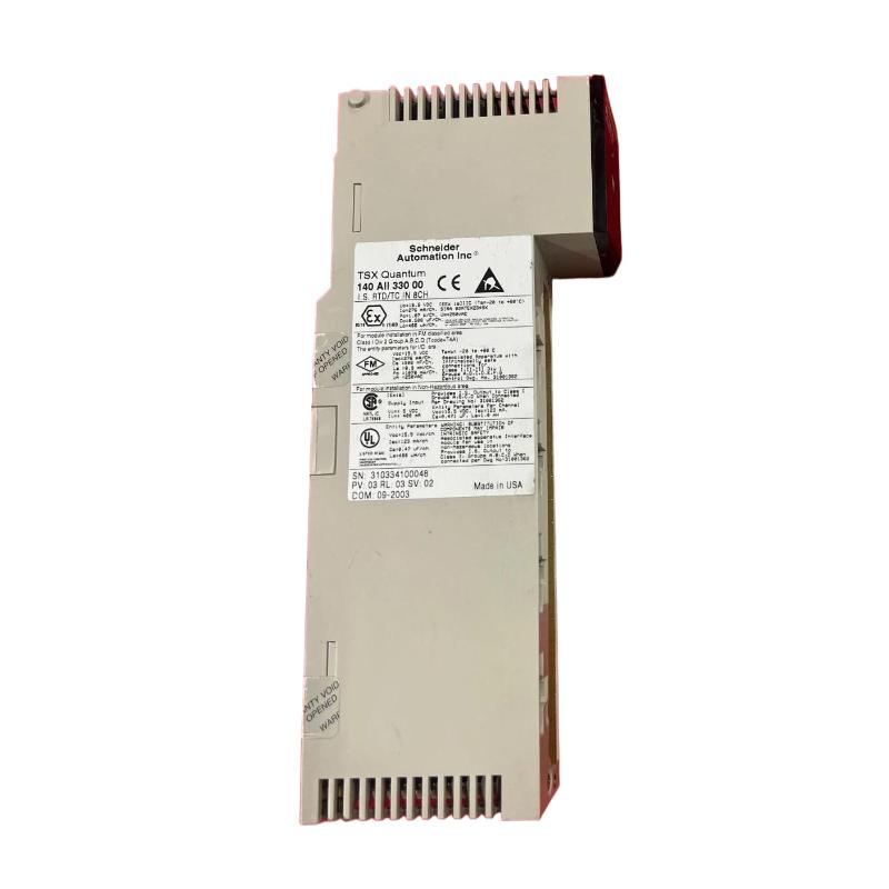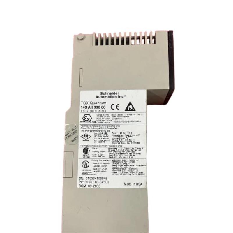 The Schneider 140AII33010 Safe Current Input Module is engineered for industrial safety applications requiring precise and fail-safe current monitoring. It accurately acquires signals from current sensors, conditions the data, and communicates safely with Schneider safety systems. Designed for reliability and robustness, this module is ideal for safety-instrumented environments where accurate current measurement is critical.