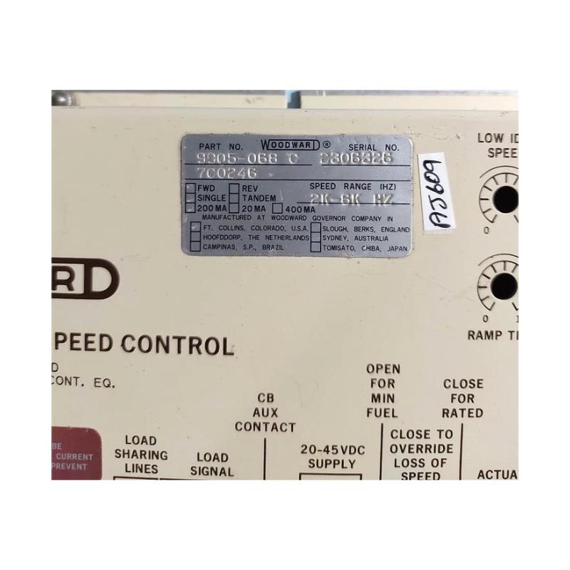The Woodward 9905-068 2301A Sharing & Speed Control Module is a precision control device designed for load sharing and speed regulation in multi-engine or turbine applications. Unlike standard speed controllers, this module provides real-time synchronization of engine outputs, ensuring balanced load distribution and optimal operational efficiency. Its design prioritizes reliability, rapid response to transient changes, and seamless integration with Woodward automation and control systems.